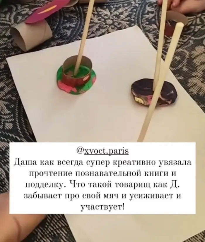 В Хвосте знакомство с книгой происходит через творчество, поэтому на каждой встрече есть творческая часть, где мы по теме мастерим. Когда дети мастерят, ведущая читает. По ходу мы обсуждаем прочитанное, говорим и про автора произведения. Например, читая истории про Муми-троллей, знакомились с Туве Янссон, думали, чему мы можем у неё научиться. Путешествовали по Финляндии и даже заглянули на остров, где жила писательница. Подробнее о том, как проходят встречи по каждой возрастной категории, смотрите в ig @xvost.paris (: