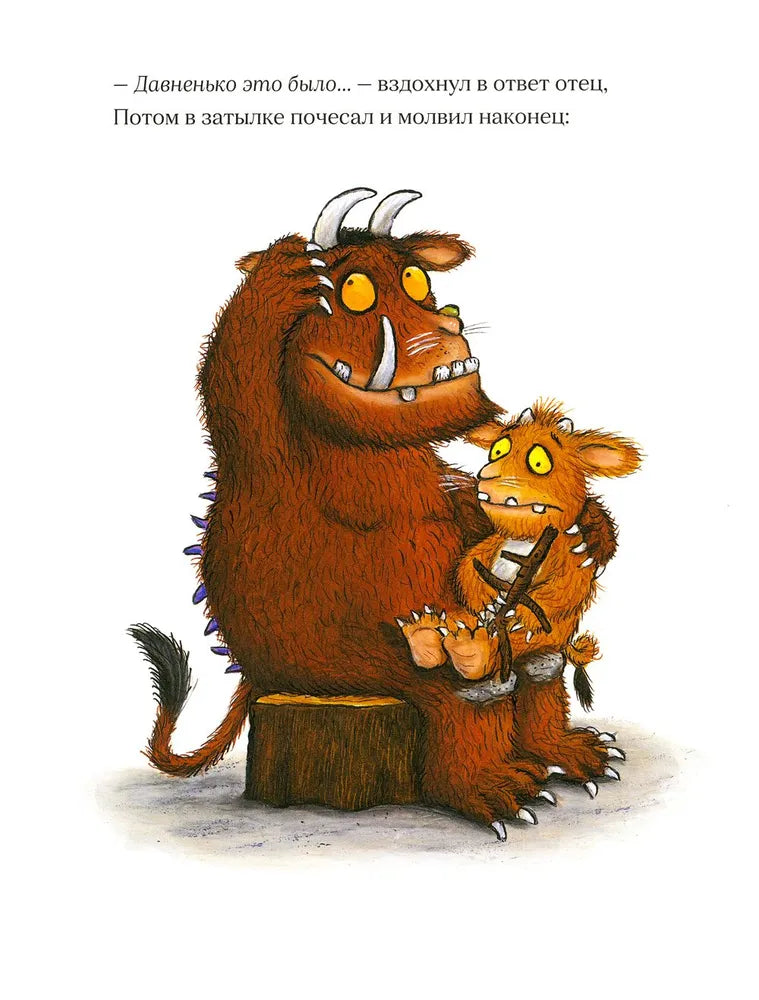 Сегодня трудно представить, что раньше никаких груффало не было. Со дня первого издания в Англии, в 1999 году, уже 26 миллионов книг о страшном звере с лиловыми шипами на спине нашли своих хозяев по всему миру, а сам герой говорит на 86 иностранных языках.