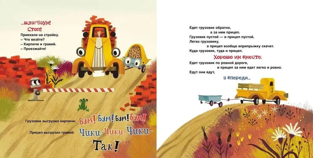 Первая книга серии-бестселлера о приключениях грузовика и прицепа – современной классики для детей от 1-го года. История в стихах о машинах, правилах дорожного движения и окружающем мире с большим количеством слов для звукоподражания и развития фонематического слуха малышей.