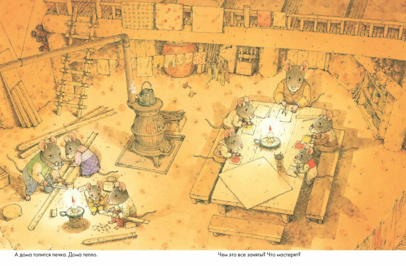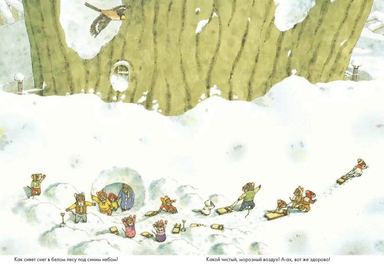 В книге "14 лесных мышей. Зимний день" уместился один уютный и радостный снежный день: пока за окном метель, мышата со старшими играют в настольные игры, мастерят и лакомятся. А когда буря стихает, можно отправиться кататься с горок на новеньких саночках и играть в снежки!
