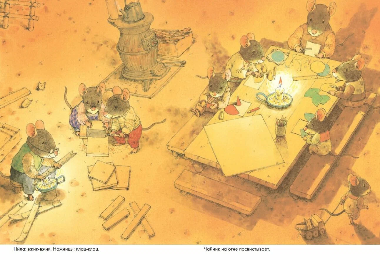 "14 лесных мышей" - очень популярная в Японии и многих европейских странах серия книг о красоте повседневности и о жизни трех поколений мышиного семейства: бабушки, дедушки, мамы, папы и еще десяток мышат.