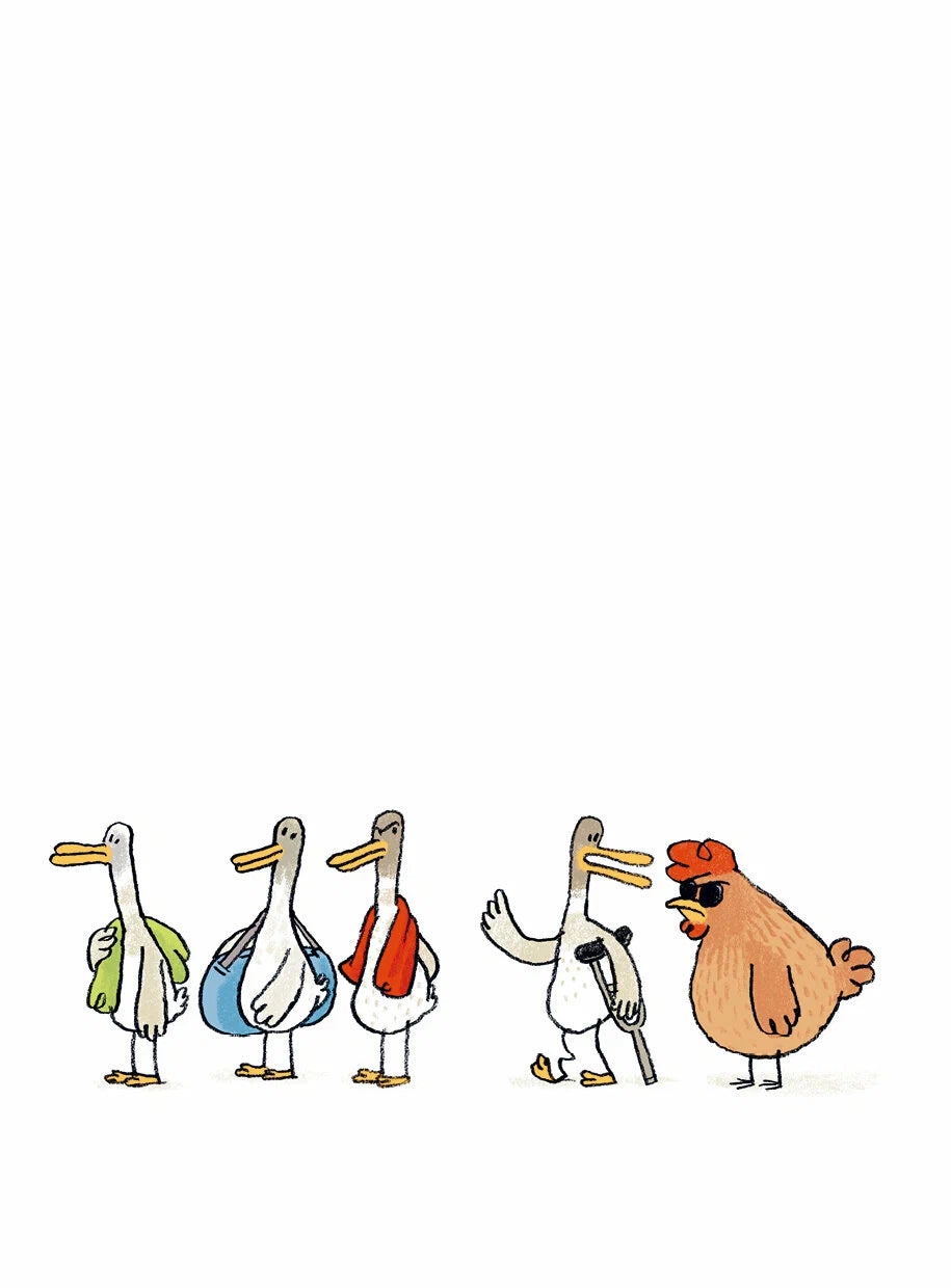 Хромая утка всю жизнь мечтала поплавать в бассейне. А ведь мечты должны сбываться. Правда, есть одна проблема: бассейн только для уток. Но кто-то же должен приглядывать за хромой уткой! Лучше слепой курицы никто с этим не справится. Да, но утка-то надеется подружиться с сородичами — а как, если курица не отходит от неё ни на шаг? И, ко всему прочему, ещё и возомнила себя важной птицей. Кажется, их дружба под угрозой..