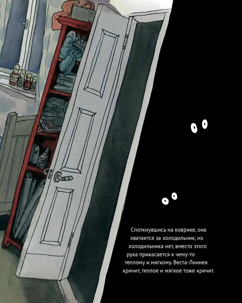 Весте-Линее иногда бывает грустно. Просто так, ни с того, ни с сего. Но грусть бывает очень разная. Вот приезжает мамина подруга Будиль, которая потеряла любимого человека, — она лежит на кровати в маленькой комнатке и плачет, плачет, плачет. Но тоска проходит, даже самая черная-пречерная. Веста-Линнея сидит на кухне в лунном свете и думает о том, что без грусти нет и радости, а жизнь — это жизнь.