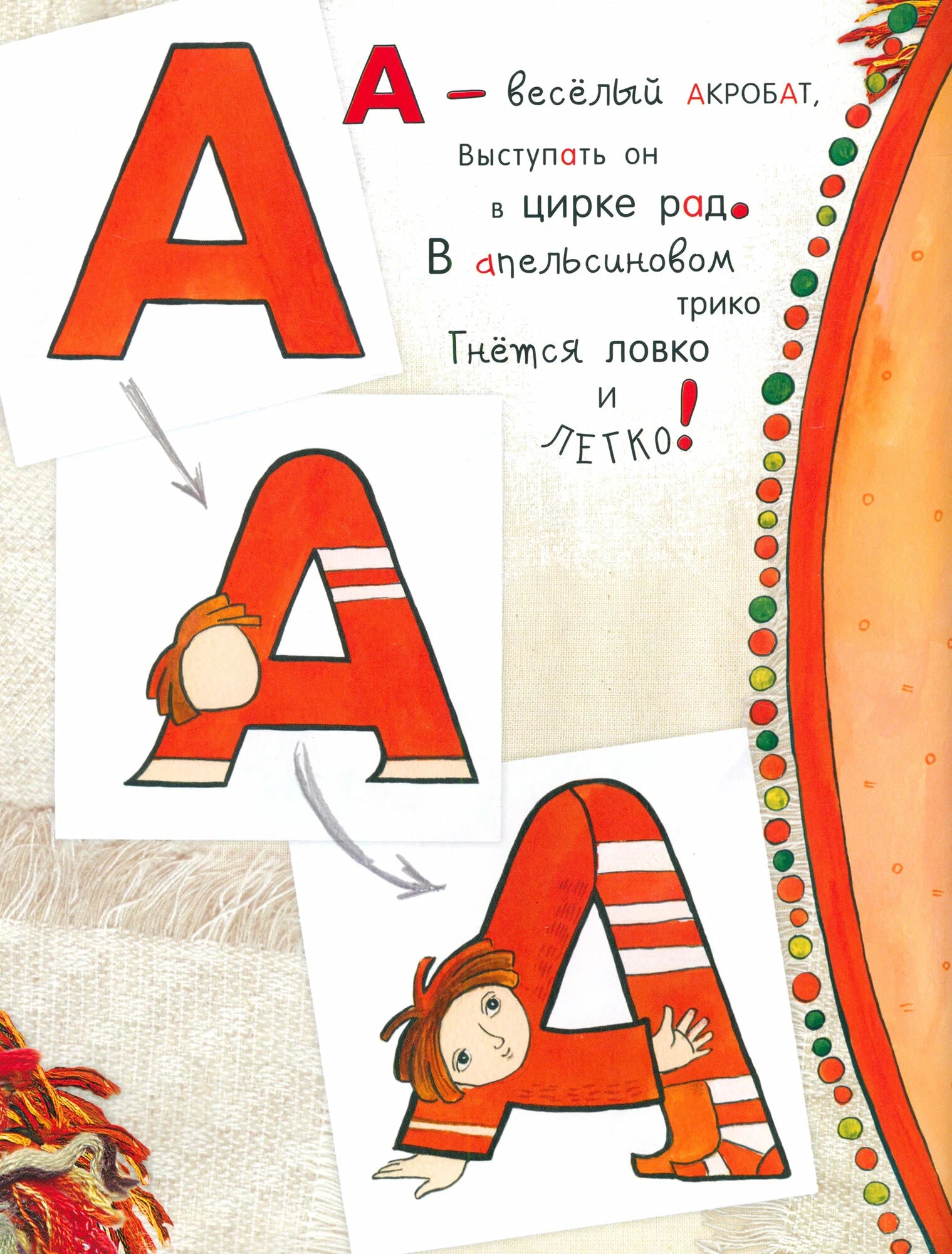В этой веселой книжке каждая буква превращается в какой-нибудь предмет. Она может стать островом, печатным пряником, клоуном, вулканом и даже царевной-птицей!
