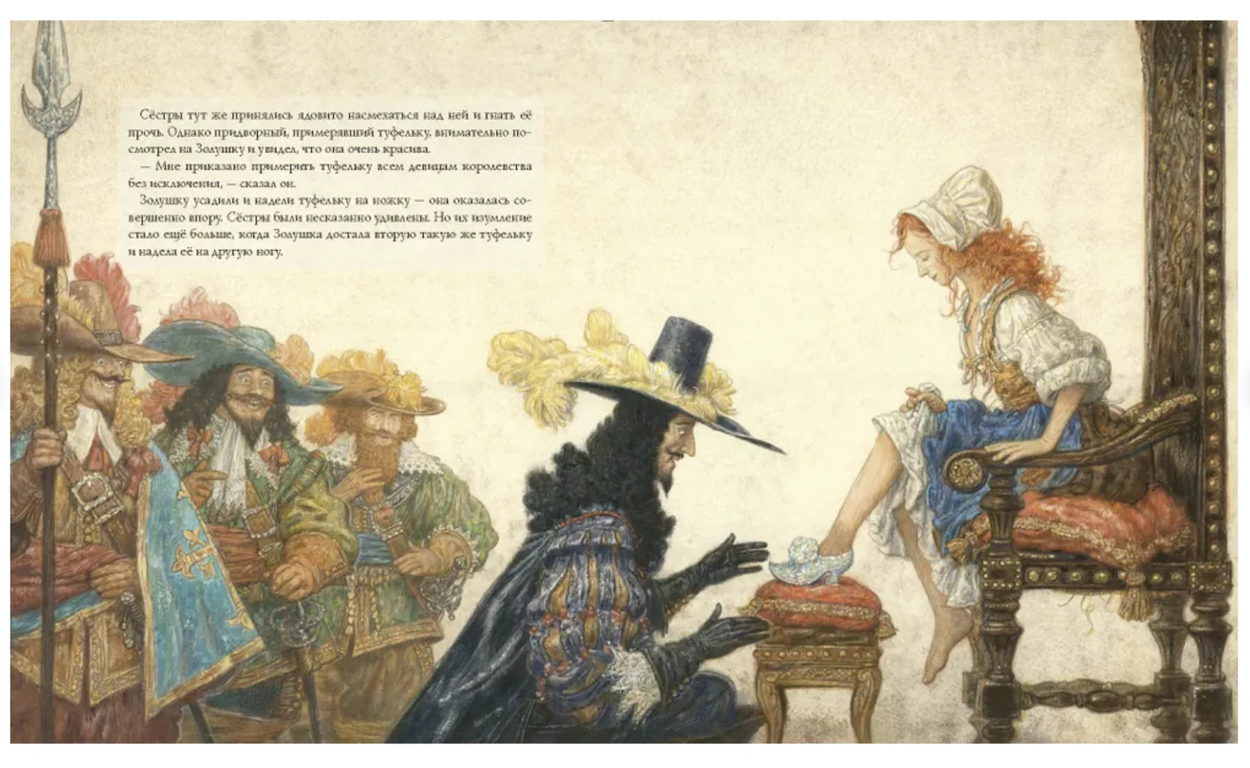 Для этой книги издательство заново перевело первую редакцию сказки Шарля Перро от 1675 года. А художник Антон Ломаев сопроводил её иллюстрациями, отправляющими читателя во Францию XVII века — века блистательных королей и придворных интриг, великолепных балов, золочёных карет и мушкетёров, века золотых сказок.