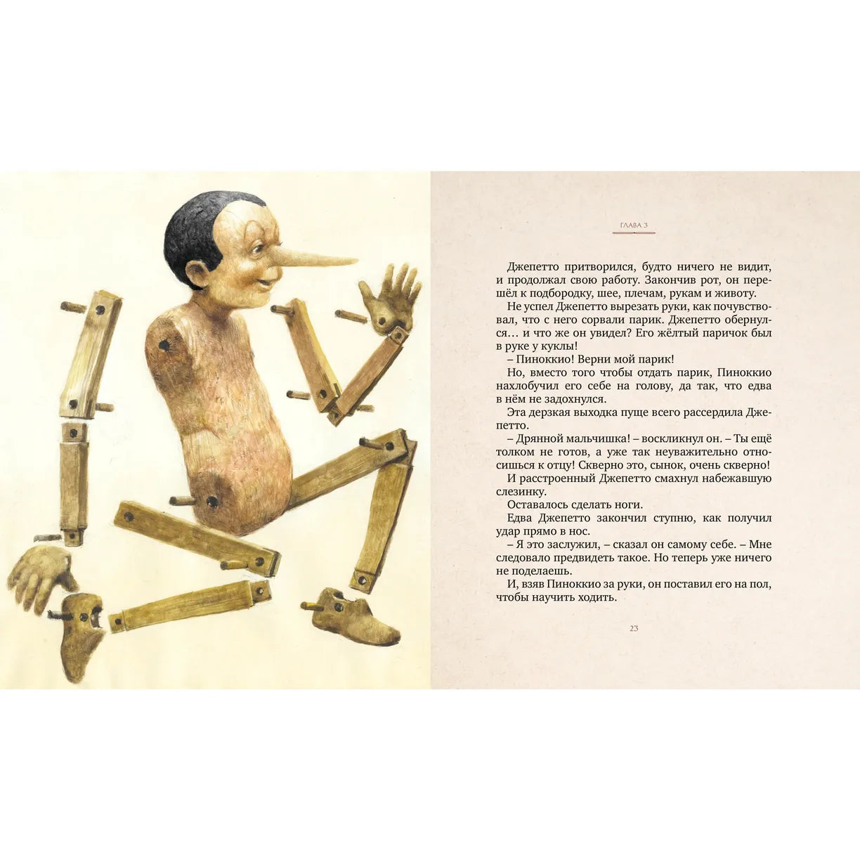 Знаменитая сказка итальянского писателя Карло Коллоди о приключениях деревянного мальчишки Пиноккио обрела в этом издании новую жизнь благодаря великолепным иллюстрациям австралийского художника Роберта Ингпена. Он получил всемирную известность как автор и иллюстратор более сотни различных книг. В 1986 году Р. Ингпен был удостоен Международной премии имени Х. К. Андерсена за вклад в детскую литературу.