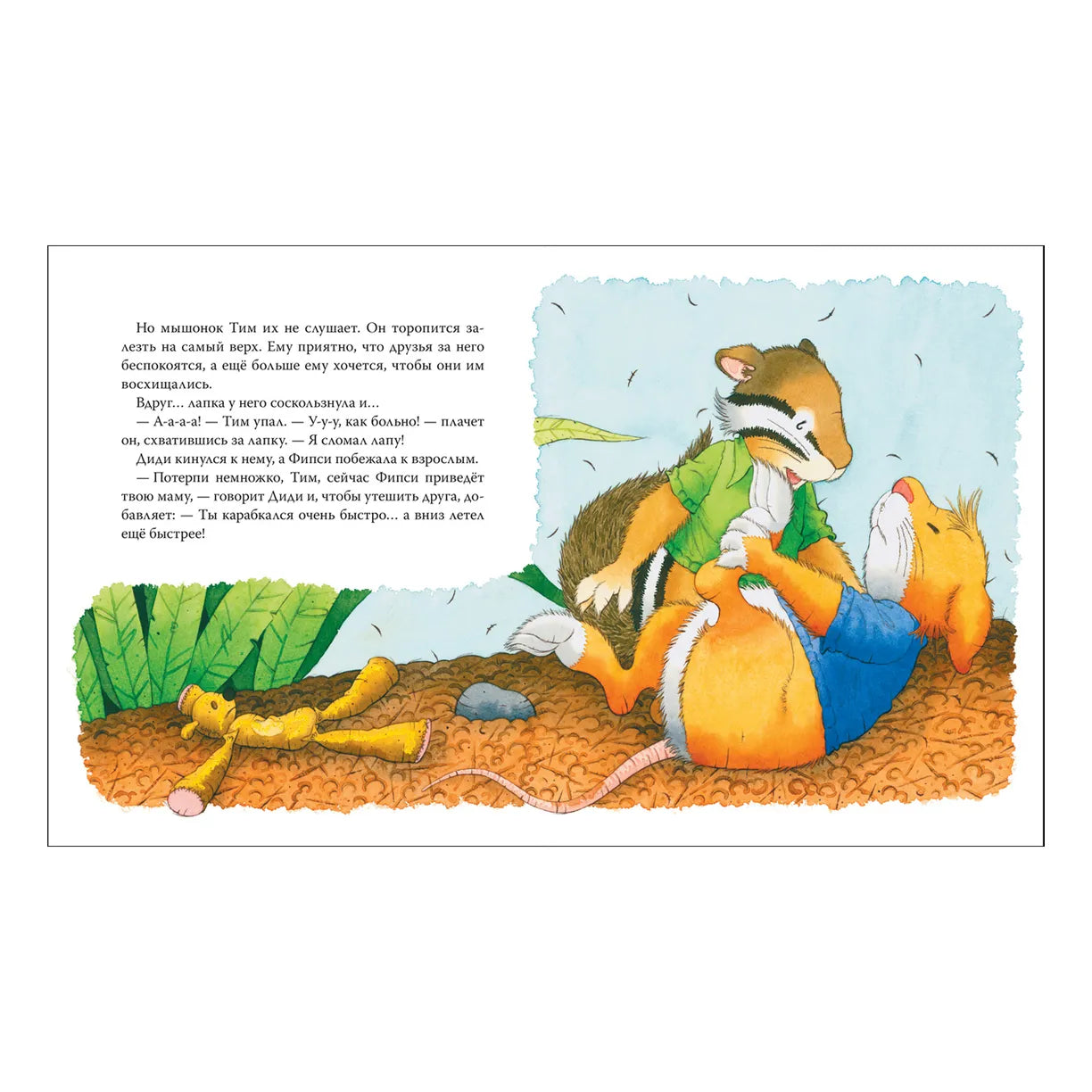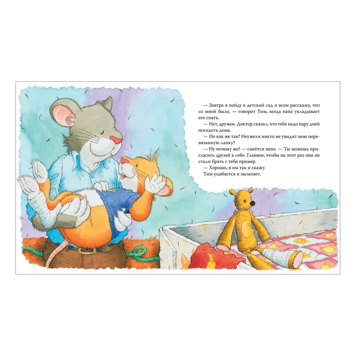 Мышонок Тим очень хотел выглядеть ловким и смелым в глазах друзей. Он отважно карабкался высоко-высоко, но сорвался и упал. Теперь Тим всеми силами старается избежать визита к врачу: вдруг в больнице ему сделают больно?