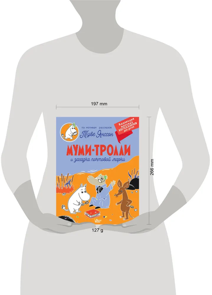 В Муми-доле кто-то отчаянно кричит! Что стряслось? Муми-тролль и Снифф решили это узнать. Ох! Альбом Хемуля упал со скалы и все марки рассыпались по берегу. А одна из них и вовсе пропала. Чтобы разгадать загадку почтовой марки, за дело берутся лучшие детективы в Муми-доле. Маленькие читатели станут участниками детективной истории и будут вместе с героями Туве Янссон раскрывать тайны и разгадывать загадки. Для детей до 3-х лет.