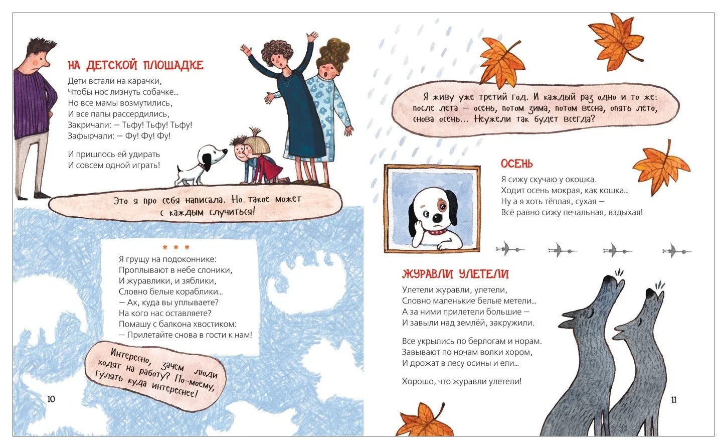 Соня не только умная и знаменитая, но еще и очень талантливая: сочиняет стихи и ведет дневник с заметками на полях. «Дневник» (он же «вечерник и ночник», ведь к настоящему поэту вдохновение приходит не только днем!) очень умная собачка ведет обо всем на свете! О любимом хозяине Иване Иваныче, о вредной соседке Пчелкиной, о воющем пылесосе, о Белке, Стрелке и летающей тарелке – ведь вокруг столько всего интересного!