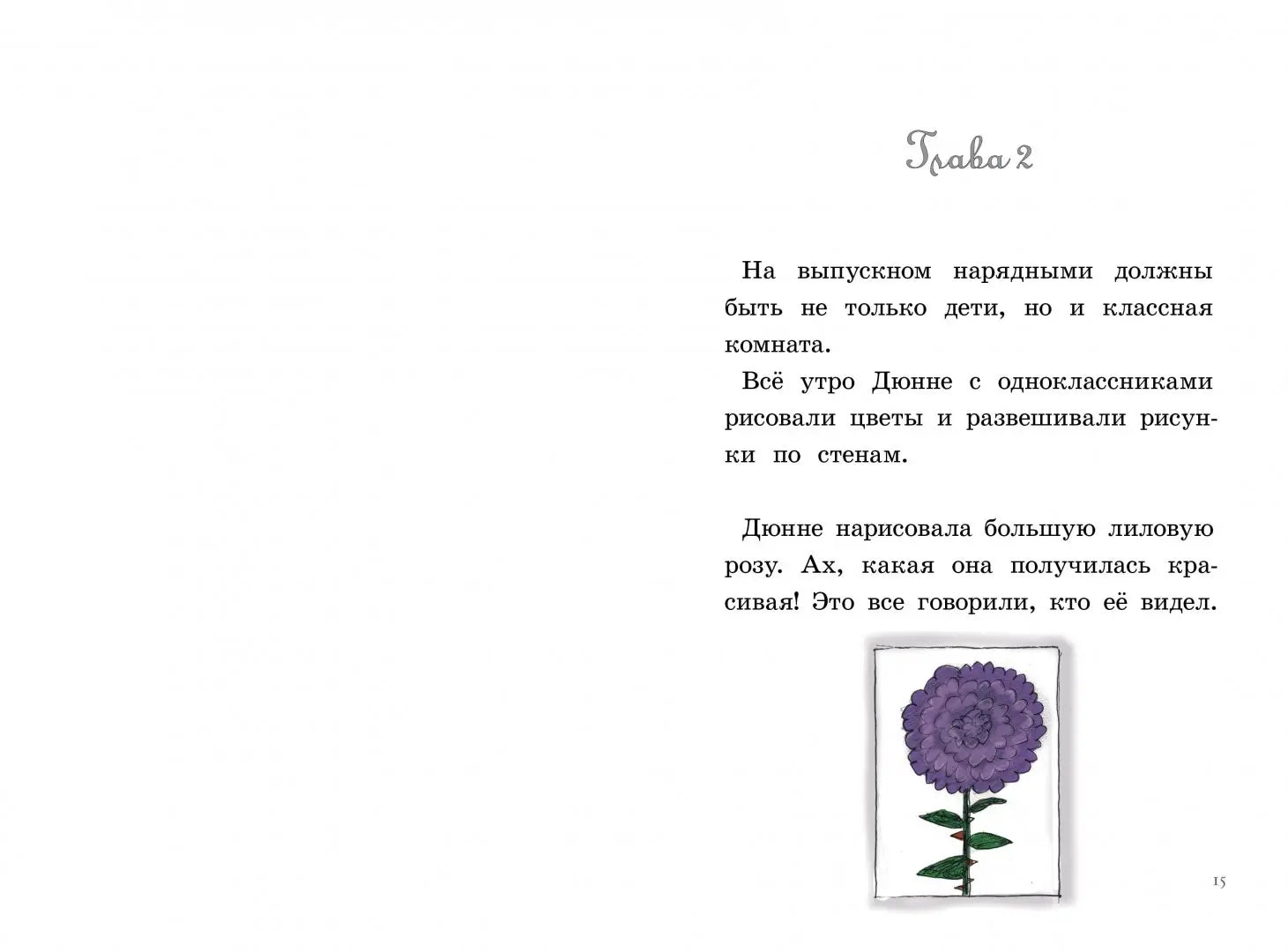 Дюнне помирилась с одноклассницами Викки и Микки, теперь они даже помогают ей: например, поделились кнопками, чтобы повесить на стену её шикарную нарисованную розу. Трудности вообще такая штука, которая всегда остаётся позади! О плохих моментах Дюнне предпочитает не думать: лучше перепрыгнуть через них - и идти дальше. Но она и не знала, что бывают такие моменты, через которые на раз-два, без подготовки, не перепрыгнешь. Как в ту среду, когда забирать её из школы неожиданно пришла бабушка - вместо папы.