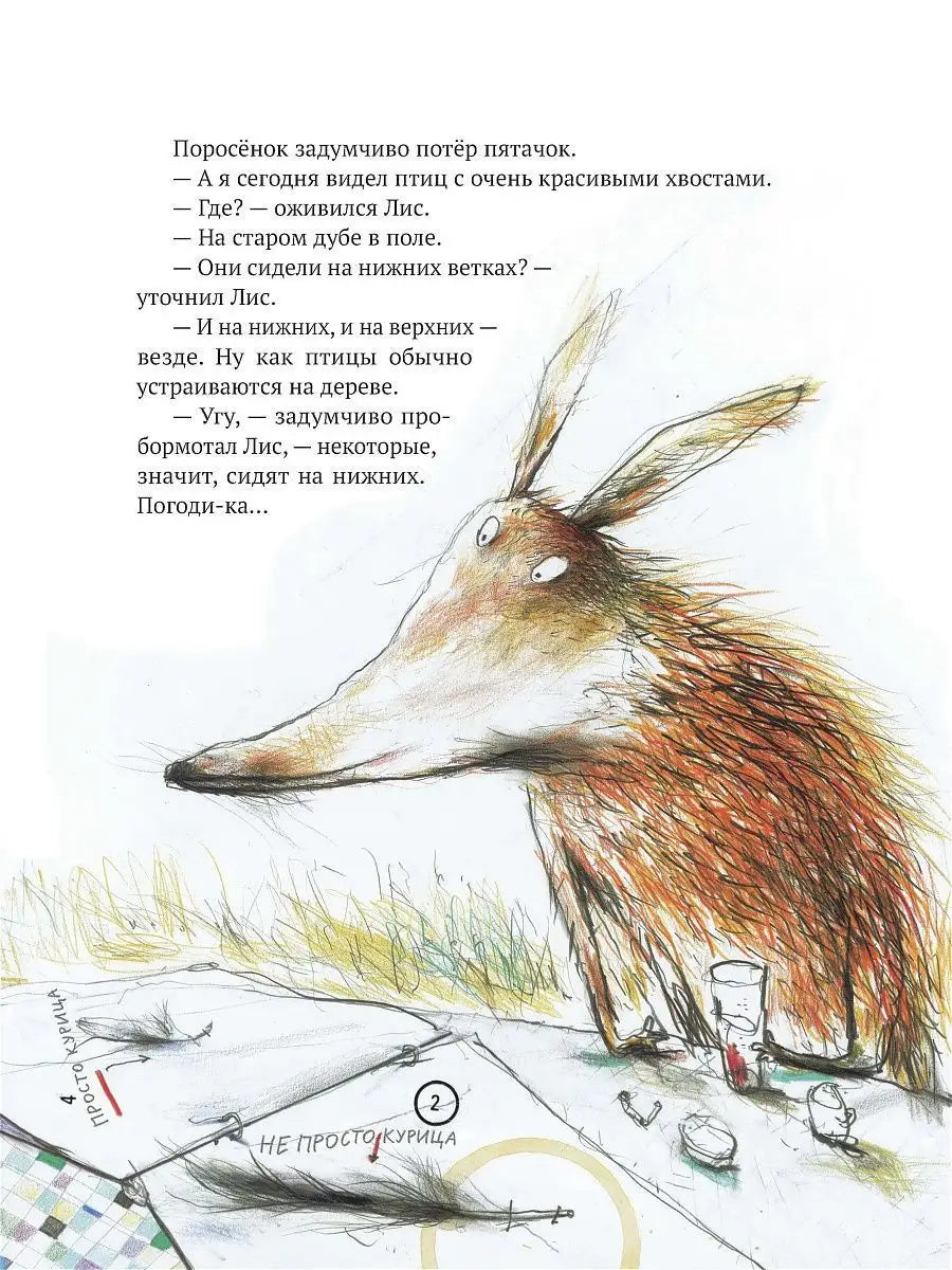 Во второй книжке наши давние знакомые — Лис и Поросёнок снова нашли приключения себе на голову (и на хвост). На этот раз друзья надумали открыть кафе для перелётных птиц. Блюда там на любой вкус: мясные мухи под соусом и отборные червяки, суп из личинок и живой десерт прямиком из муравейника. Вот только расплачиваться за угощение птицам придётся очень необычным способом.