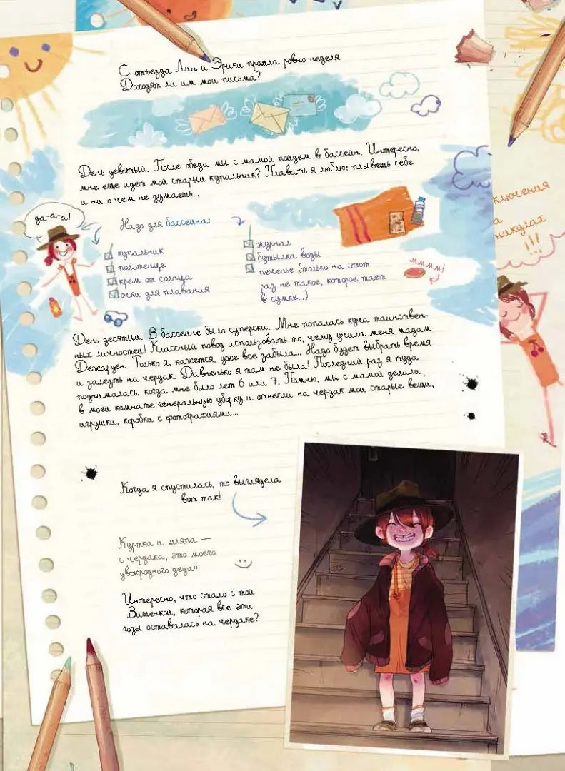 Книга очень интересно устроена. В части, где она нарисована как комикс, мы видим, какие события происходят с Вишенкой, а в дневниковой части — как осмысляет эти события героиня и как она ведет свое детективное расследование.