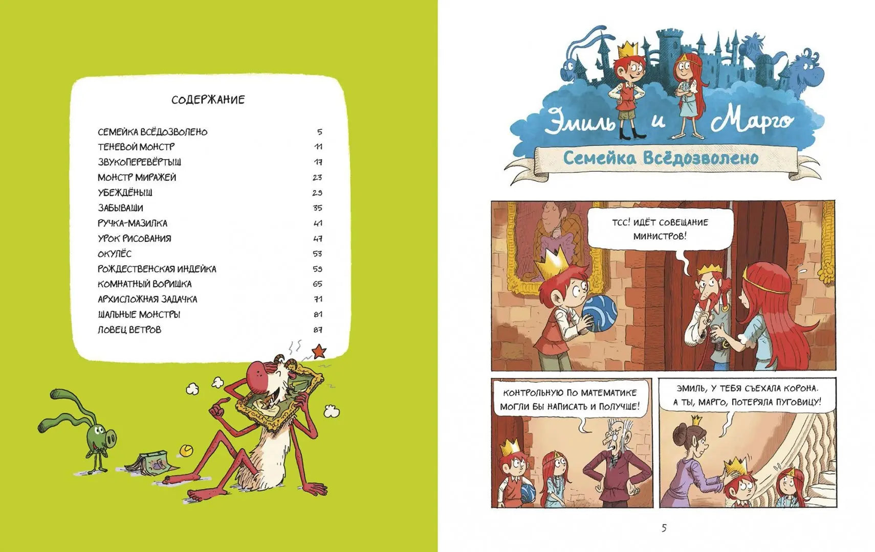 Кто превратил фонтан в гигантское мороженое? Кто надел на статую носок? Кто заставил птиц мяукать, а кошек чирикать? Конечно же, монстры. Они всегда готовы устроить кавардак в замке... На радость Эмилю и Марго! Читайте всей семьей и хихикайте над новыми приключениями озорных принца и принцессы.