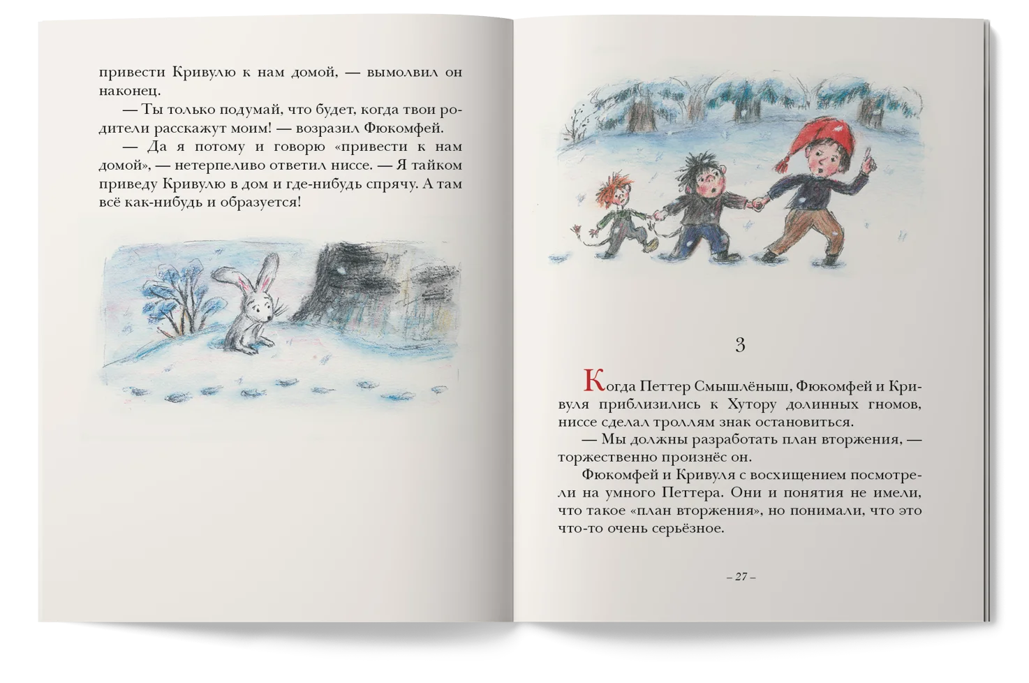 Увлекательная рождественская история о приключениях маленького забавного троллика Кривули, мастера на все руки. Малыш сбегает от жестоких сородичей. Чтобы не попасть в лапы к Лешему, он прячется в сундуке ниссе — норвежских гномов и вскоре становится полноправным членом их многочисленной, дружной, заботливой и гостеприимной семьи.