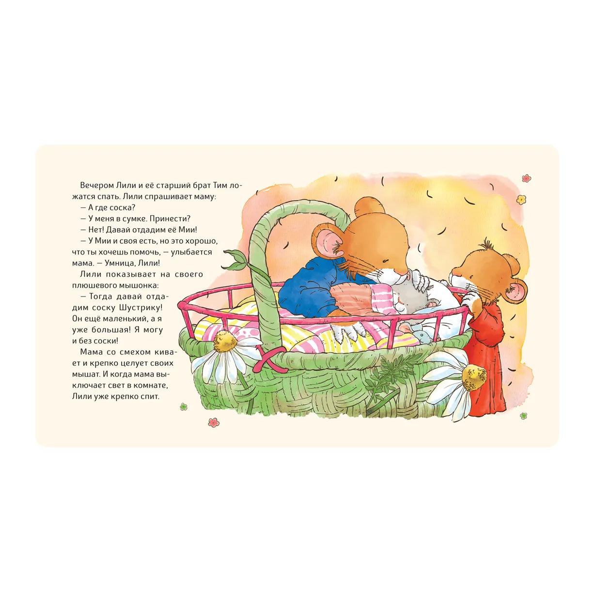 Лили – совсем крошка и только познает мир. Впереди у нее много важных дел: проститься с любимой пустышкой, подружиться с горшком, научиться засыпать самостоятельно. Хорошо, что родители и старший брат рядом, с их помощью точно все получится!
