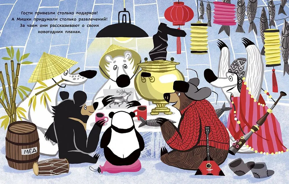 Под Новый год в гости к Мишкам приехали родственники: панда из Китая, гималайский мишка с Тибета и суровый русский медведь. Ведь только здесь, на Севере, можно вкусить все радости зимних каникул: прокатиться на оленях, окунуться в ледяную прорубь, посостязаться в скорости со снежной лавиной, а потом и со снежным человеком... Да еще и Дед Мороз заезжает в гости! НЕЗАБЫВАЕМЫЕ впечатления!