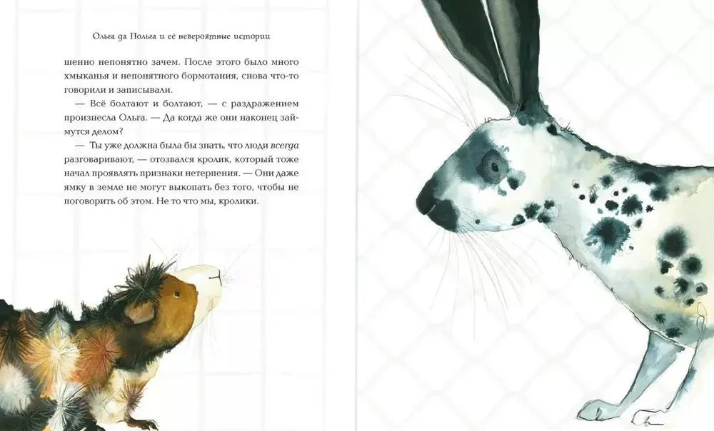 Ольга да Польга всегда выделялась из толпы других морских свинок в зоомагазине. Во всяком случае, она была в этом уверена. Выделялась не только яркой шубкой в непослушных завитках и замечательно-толстыми щеками. Главное, что делало её особенной, – неуёмная фантазия и жажда приключений! Непревзойдённая выдумщица и рассказчица, она была уверена, что её ждёт увлекательное будущее, полное захватывающих событий и неожиданных сюжетных поворотов. И в один прекрасный день приключения Ольги начались!