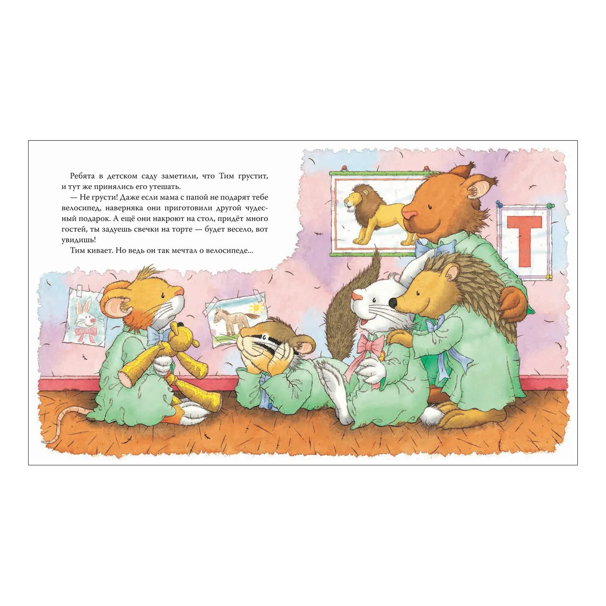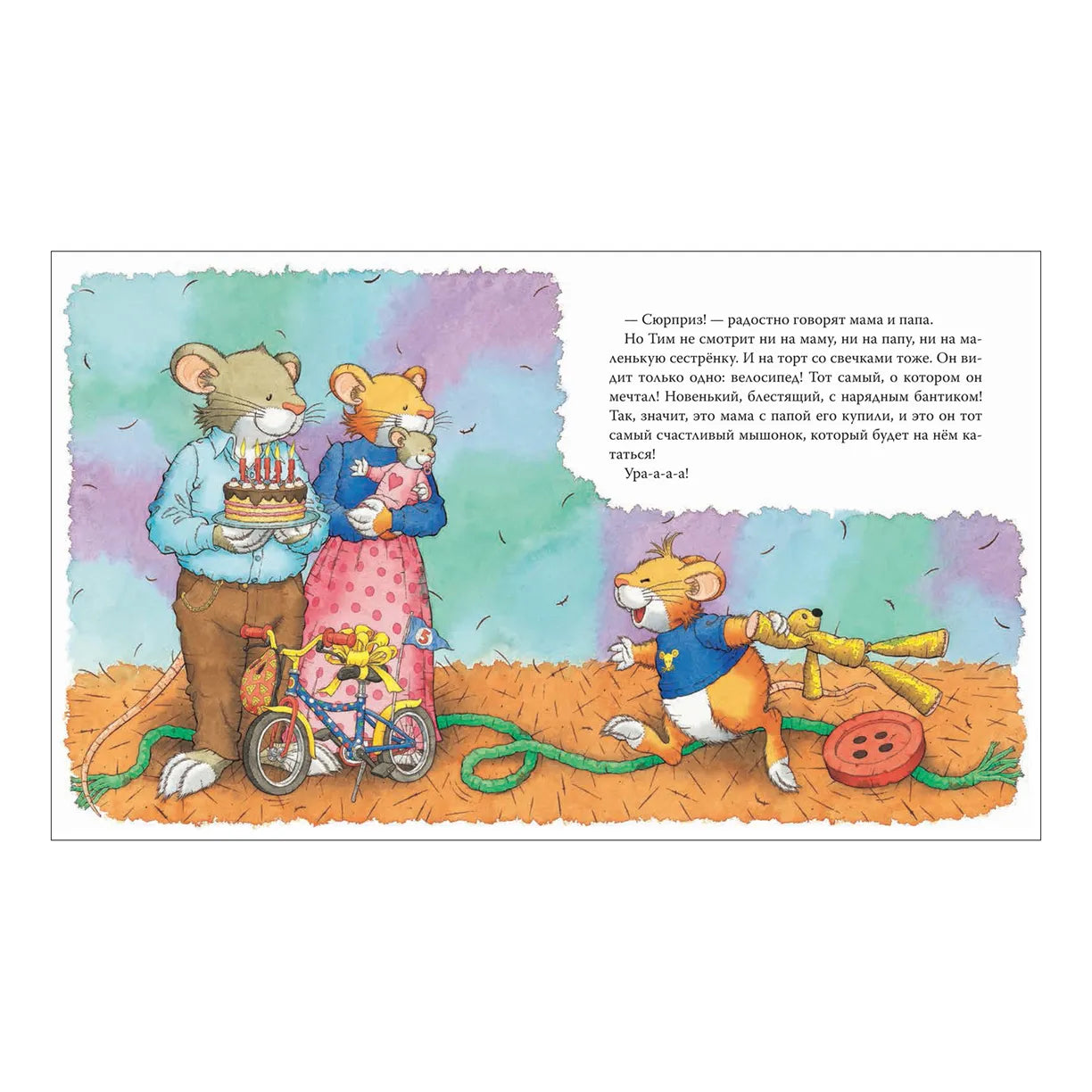 Как быть, если малыш очень хочет получить в подарок кое-что особенное и всячески на это намекает? У мышонка Тима скоро День Рождения, и ему очень хочется получить в подарок велосипед. Он хитростью пытается выведать у мамы с папой, что же ему подарят, но те не признаются. А желанный велосипед вдруг исчезает из витрины магазина! Неужели на нем теперь будет кататься какой-то другой, счастливый мышонок? Скоро Тим поймет, что получать сюрпризы гораздо приятнее, чем знать о подарках заранее!