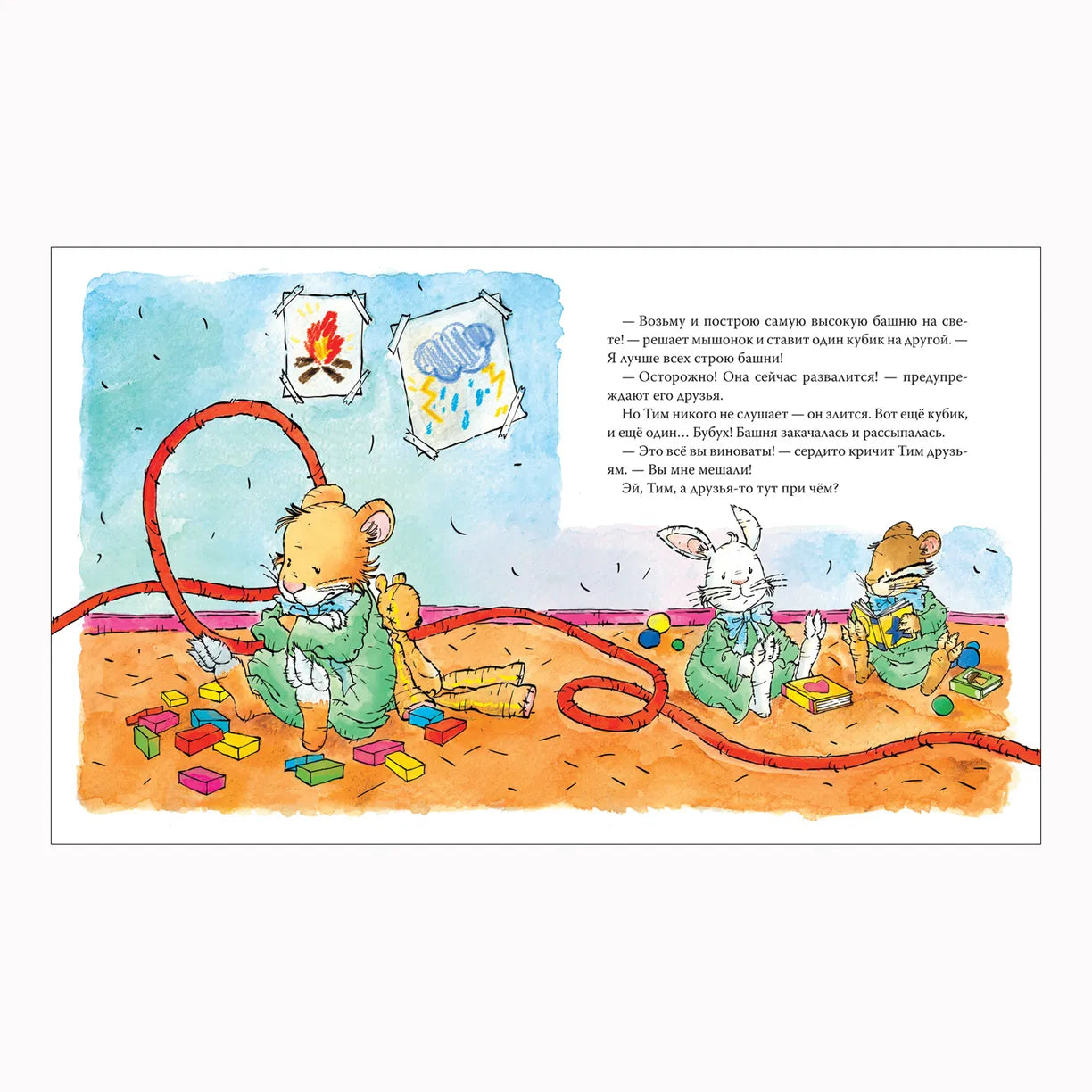Сегодня у мышонка Тима плохой день. Все идет не так. На завтрак – хлопья, а ведь Тим хотел крекеры! Воспитательница в детском саду рассказывает сказки, которые он уже знает. Друг не дает поиграть с машинкой. А только-только купленный воздушный шарик сразу лопается! Мышонок ужасно злится и обвиняет в своих бедах всех вокруг.