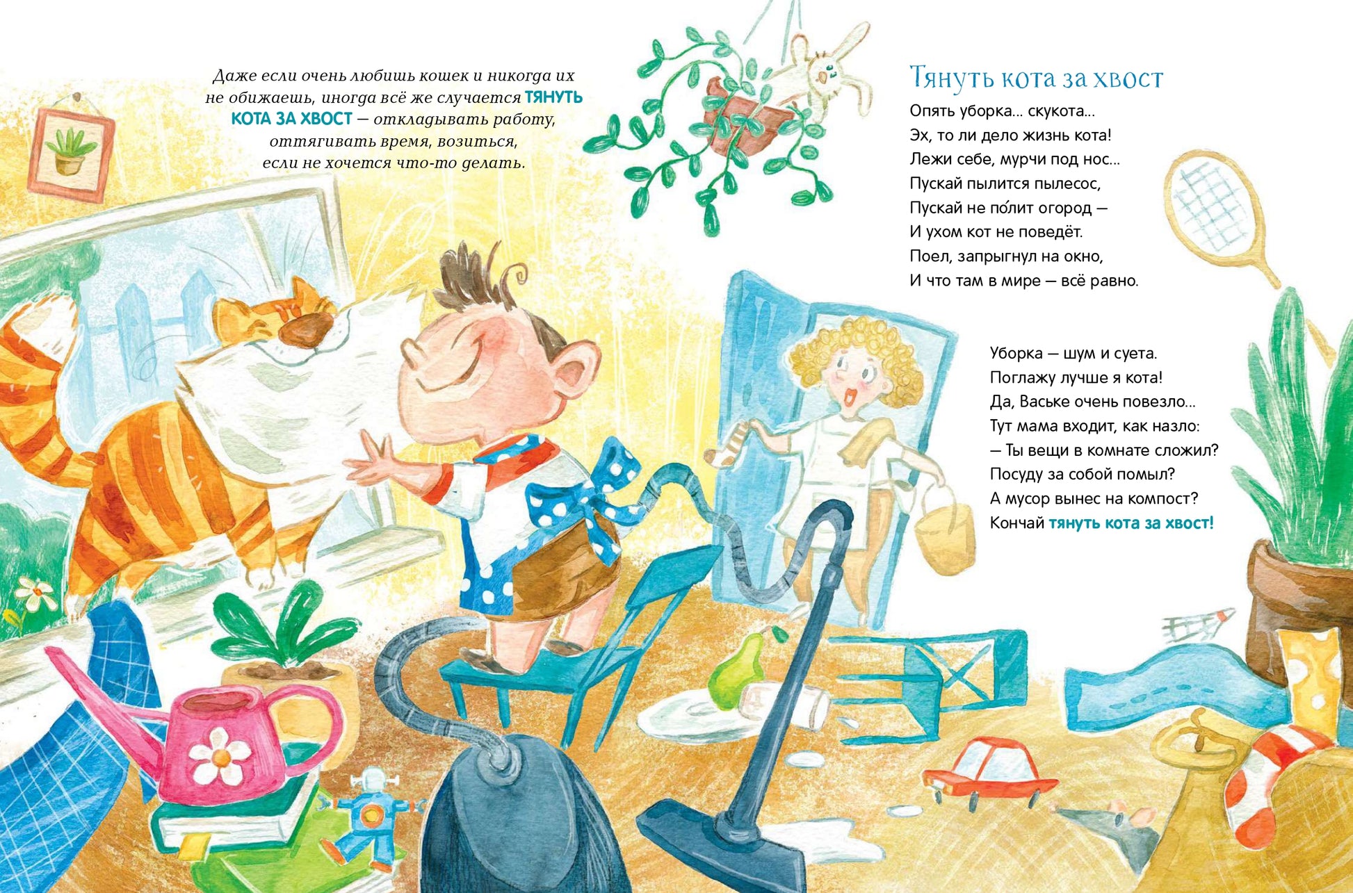 В этом сборнике стихов детский писатель и поэт Юлия Весова знакомит ребят с самыми разными фразеологизмами русского языка. Герои задорных стихотворений и кота за хвост тянут, и свинью подкладывают, а ещё вешают нос, теряют голову и выходят сухими из воды. Как такое возможно? Понять заковыристый язык взрослых и разобраться в значениях крылатых выражений помогут доступные пояснения автора.