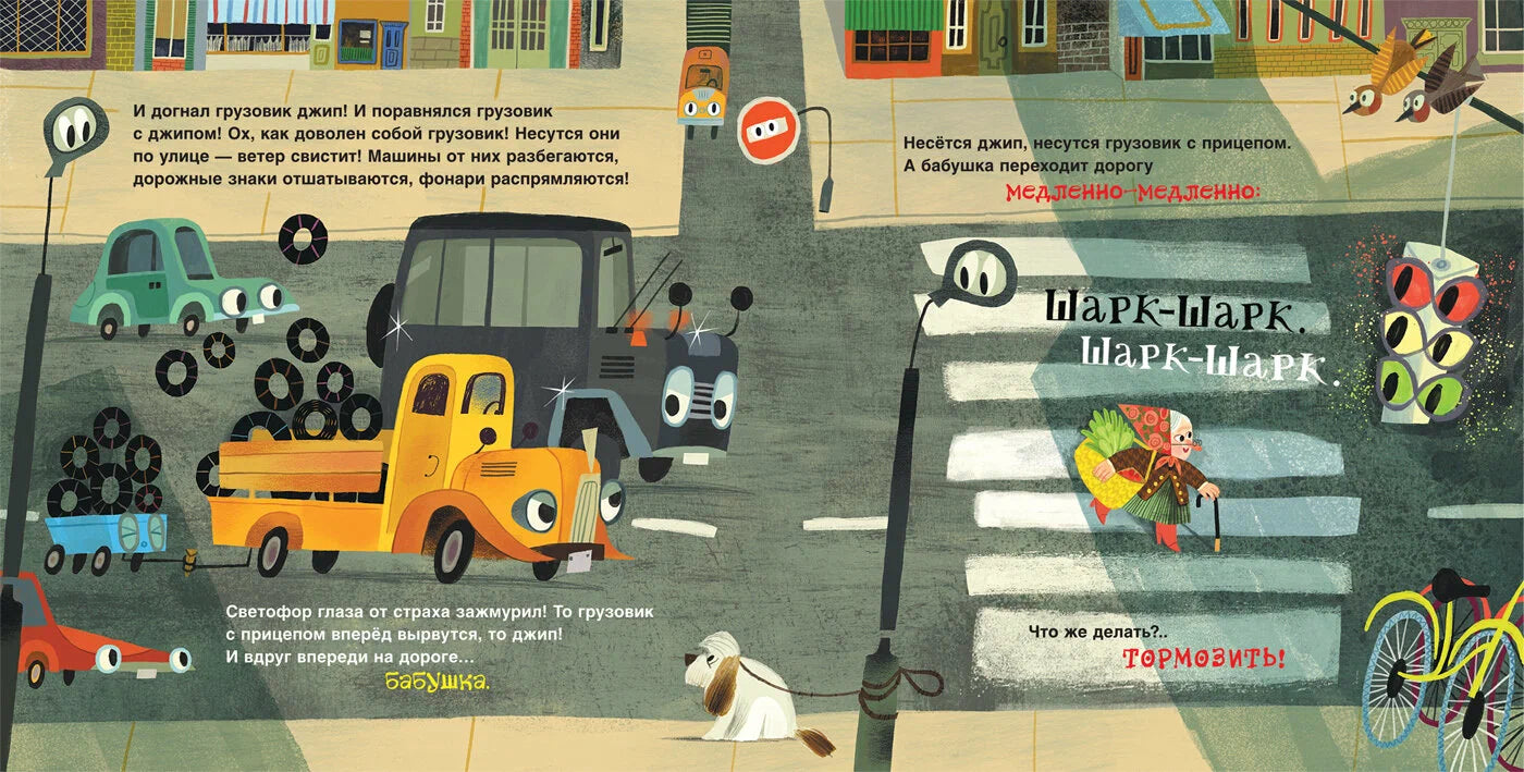 Грузовик и прицеп снова отправляются в путь! На этот раз они едут в город, в командировку. Впереди длинная дорога, соревнования с джипом, встреча с миленькой розовой машинкой и много-много приключений. Героев ждет еще больше новых знакомств, поездок, а также слов для звукоподражания и познавательных фактов об окружающем мире.