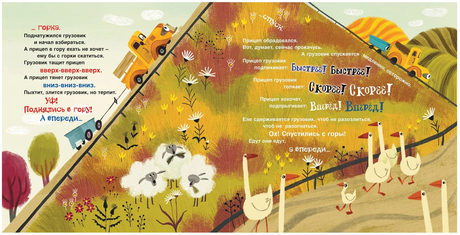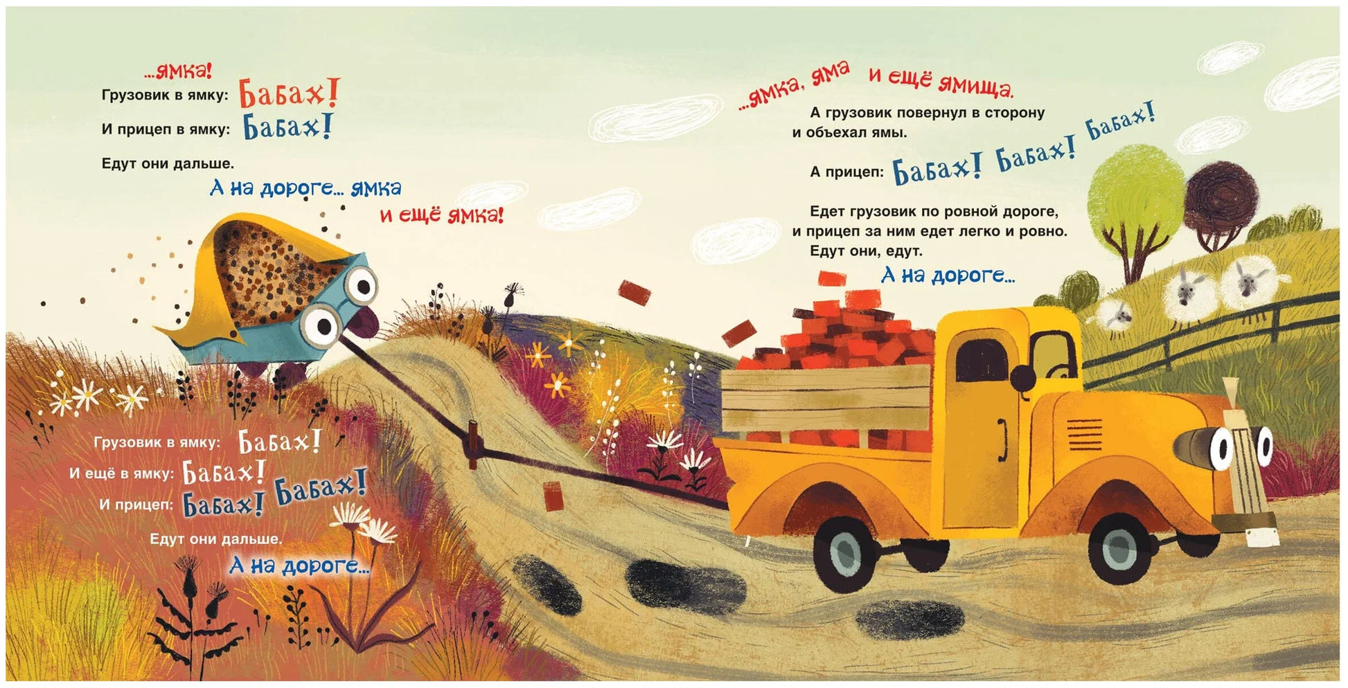 Первая книга серии-бестселлера о приключениях грузовика и прицепа – современной классики для детей от 1-го года. История в стихах о машинах, правилах дорожного движения и окружающем мире с большим количеством слов для звукоподражания и развития фонематического слуха малышей.