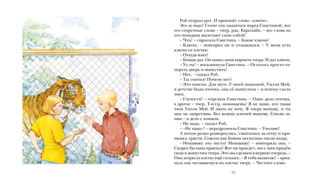 Светлая и правдивая история о том, как шестиклассник Роб Хортон однажды нашёл тигра, которого безжалостный хозяин спрятал в лесу в железной клетке. Тигр стал самой большой тайной мальчика. И только одному человеку на свете он раскрыл её - Сикстине, новенькой однокласснице, ставшей, как и Роб, изгоем в классе. Это повесть о двух подростках, оказавшихся в непростой жизненной ситуации, о том, как больно терять тех, кого любишь. А главное - о храбрости и чести и о том, как важно оставаться собой и верить в свои силы.