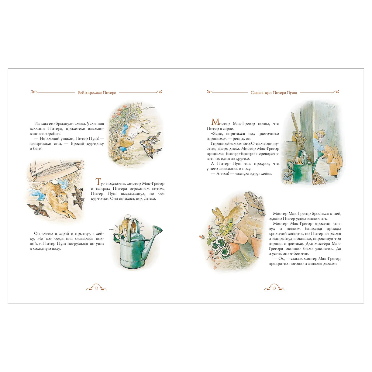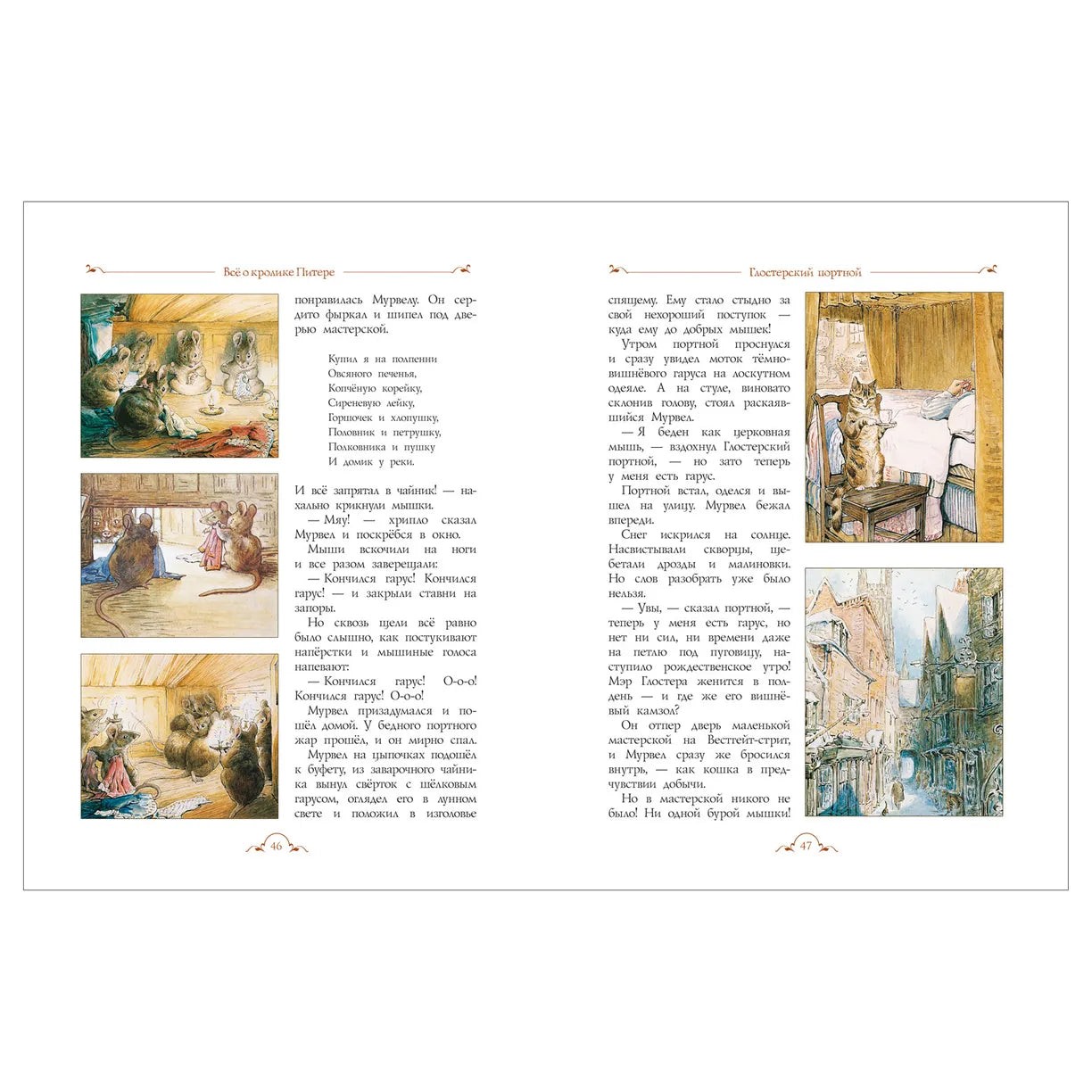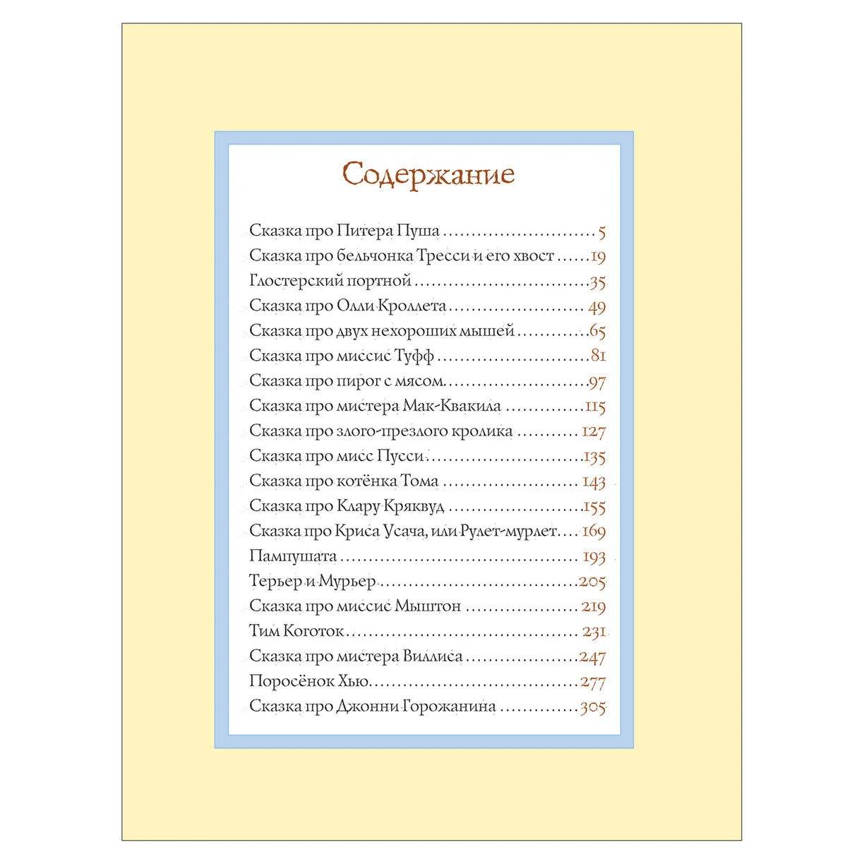 «Всё о кролике Питере» – это наиболее полное издание сказок Беатрис Поттер на русском языке. В книгу вошли сказки: «Сказка про Питера Пуша», «Сказка про бельчонка Тресси и его хвост», «Глостерский портной», «Сказка про Олли-Кроллета», «Сказка про двух нехороших мышей», «Сказка про миссис Туфф», «Сказка про пирог с мясом», «Сказка про мистера Мак-Квакила», «Сказка про злого-презлого кролика», «Сказка про мисс Пусси», «Сказка про котёнка Тома», «Сказка про Клару Кряквуд», «Сказка про Криса Усача, или Рулет-мурлет», «Пампушата», «Терьер и Мурьер», «Сказка про миссис Мыштон», «Тим Коготок», «Сказка про мистера Виллиса», «Поросёнок Хью», «Сказка про Джонни Горожанина» в переводе М. Гребнева.
