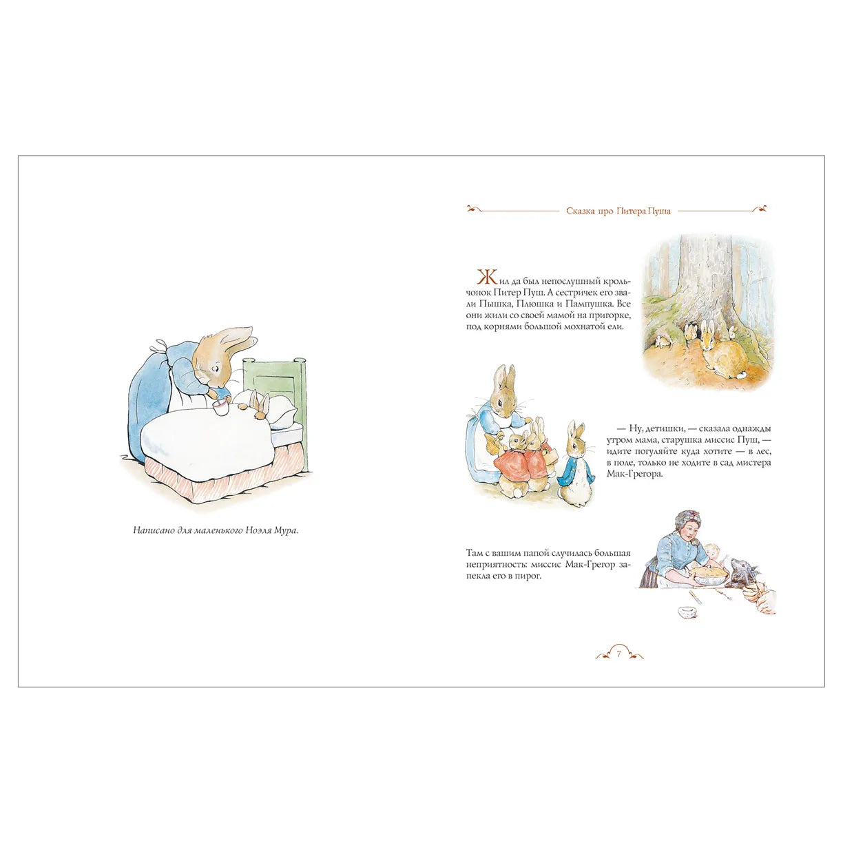 Первая сказка – о кролике Питере Пуше в голубой курточке – родилась из иллюстрированного письма Беатрис Поттер к детям своей бывшей гувернантки. Затем появились и другие, о новых героях – бельчонке Тресси, котёнке Томе, мистере Мак-Квакиле, Кларе Кряквуд и, конечно, продолжение приключений кролика Питера. Беатрис Поттер почти всю жизнь прожила в Озёрном краю, на севере Англии, публиковала сказки и рисовала иллюстрации, на которых запечатлены фермы, деревни и сады этого живописного края.