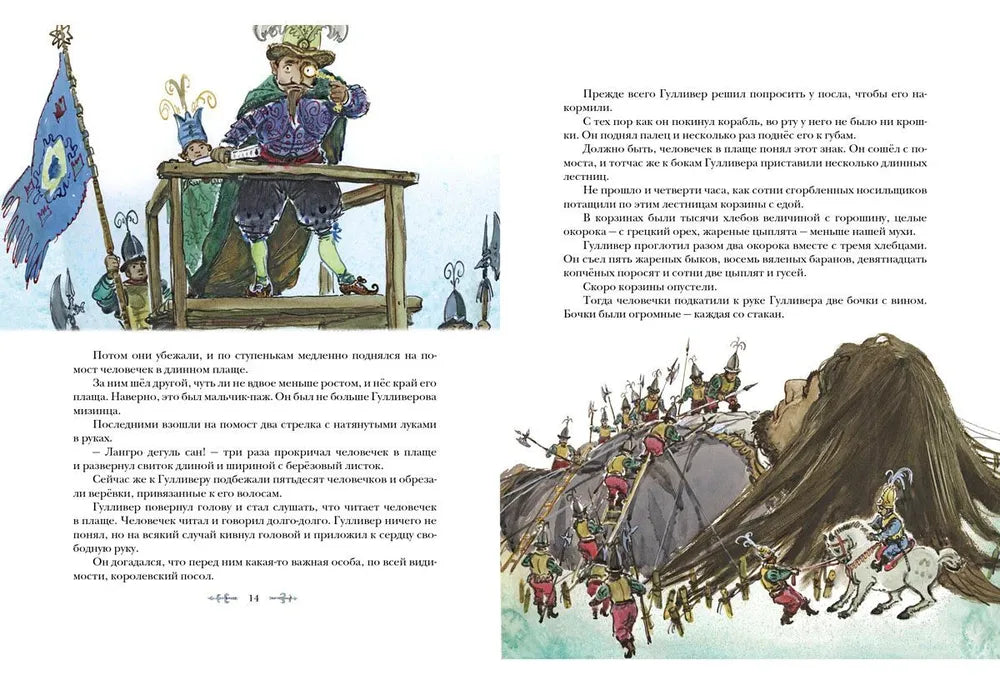 В книге представлен пересказ для детей двух самых интересных частей романа Джонатана Свифта: "Путешествие в Лилипутию" и "Путешествие в Бробдингнег". Великолепные иллюстрации выполнены известным художником Владимиром Шевченко.