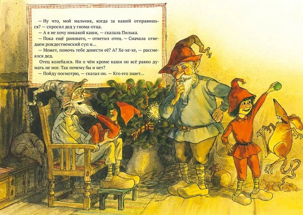 Новая книга замечательного шведского художника и писателя Свена Нурдквиста рассказывает о рождестве в семействе гномов, где царят свои традиции. На Новый год хозяева должны поднести им тарелку каши, а не то случатся несчастья. Но в этом году люди забыли древние обычаи, и гномам надо спасать положение. Забавные приключения семейки крошечных человечков и их несравненной мыши.