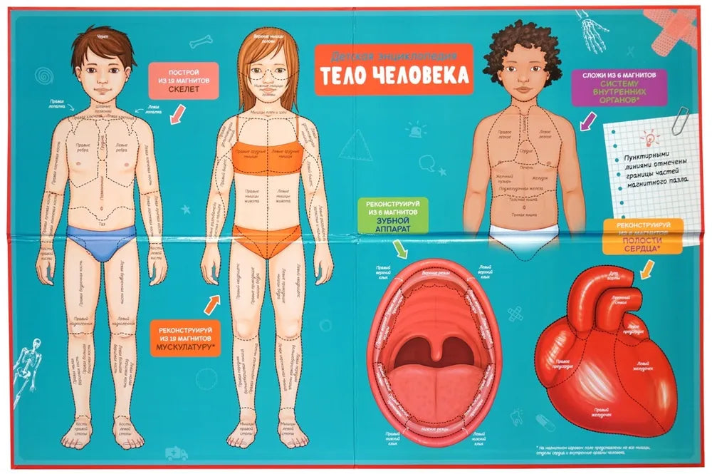 Cложи 5 картинок из 56 магнитов, представляющих разные части тела. такой знаток секретов анатомии человека, каким ты станешь, прочитав эту книгу, легко справится с этим заданием.