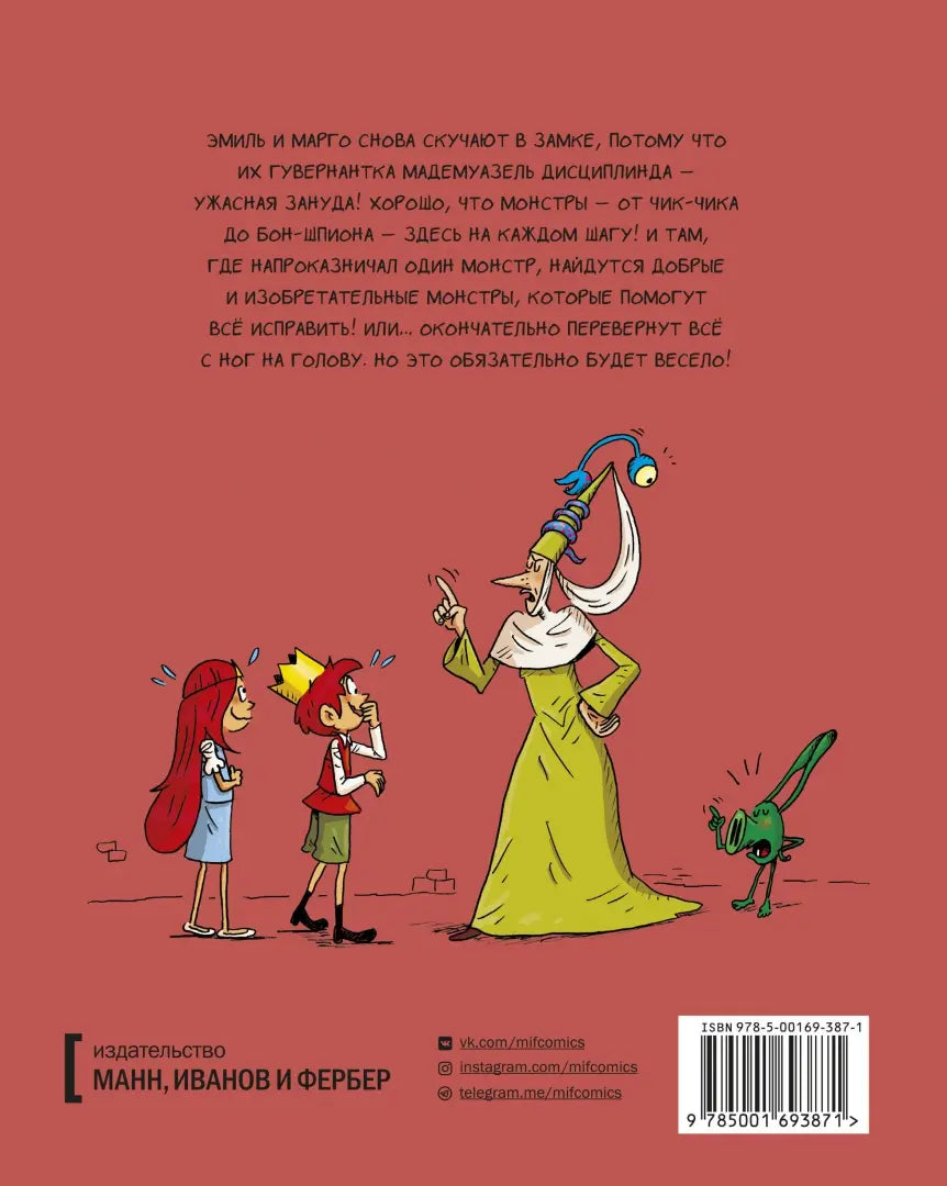 В лесу вокруг замка Эмиля и Марго живёт целая орава монстриков, от ужасного Головокружа до милейшего Амурчика, — и они тут как тут даже в самой безвыходной ситуации. Выручат с контрольной по географии, даже если для этого нужно перенести горы, помогут присмотреть за беспокойной малышкой, запрут в сарае кошмарную мадам Вамзадам...