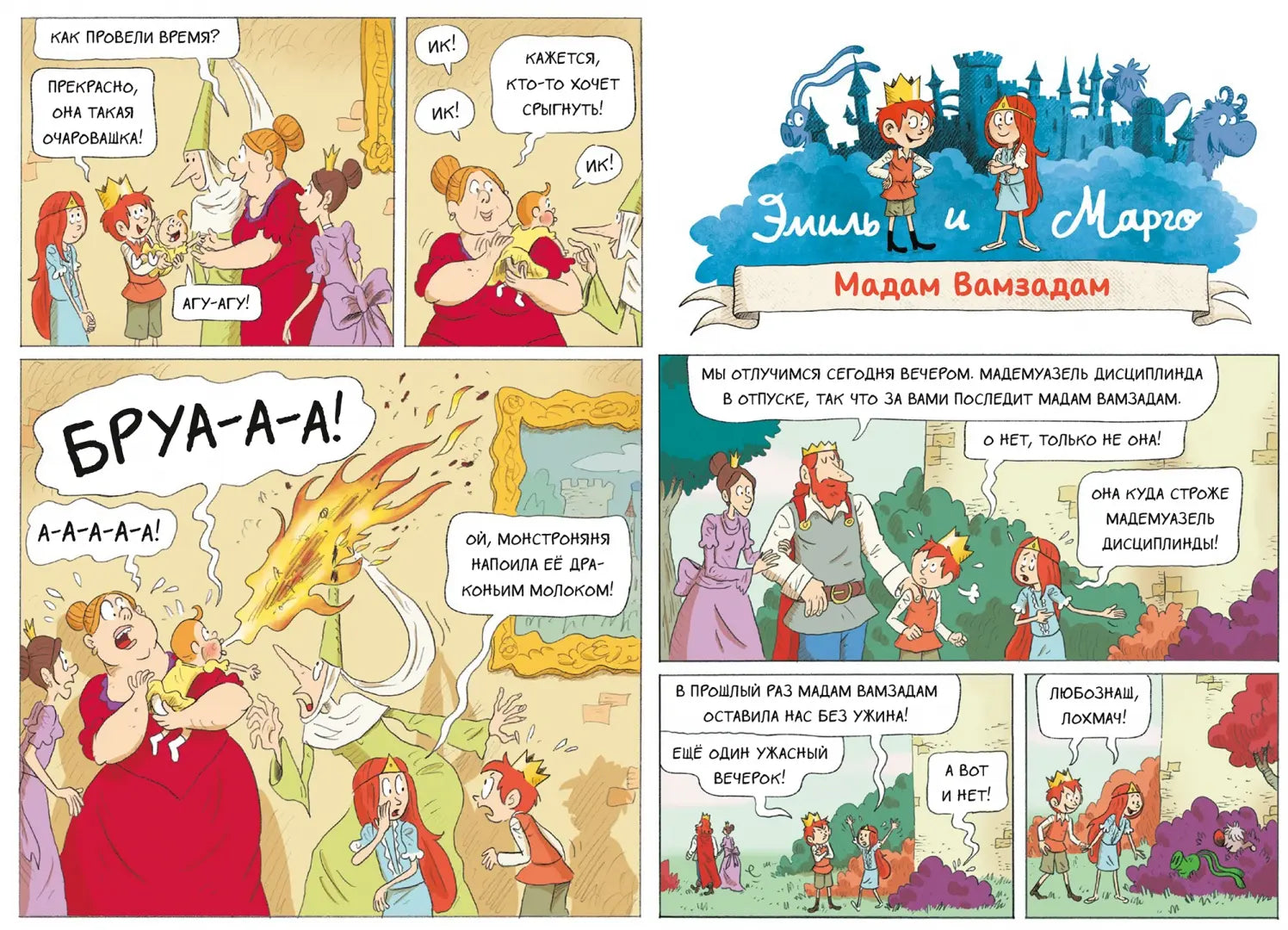 В лесу вокруг замка Эмиля и Марго живёт целая орава монстриков, от ужасного Головокружа до милейшего Амурчика, — и они тут как тут даже в самой безвыходной ситуации. Выручат с контрольной по географии, даже если для этого нужно перенести горы, помогут присмотреть за беспокойной малышкой, запрут в сарае кошмарную мадам Вамзадам...